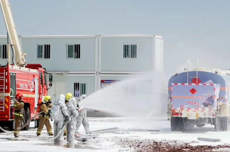 本次演練創(chuàng)新采用虛實結(jié)合、科技應(yīng)用與第一視角模式,模擬腳手架坍塌、柴油罐車起火、丙烯球罐泄漏等多起事故,檢驗榆林化學(xué)與建設(shè)集團多類型事故并發(fā)處置能力。事故模擬發(fā)生后,兩家單位迅速啟動應(yīng)急預(yù)案,充分發(fā)揮高科技設(shè)備與技術(shù)應(yīng)用優(yōu)勢,精準(zhǔn)定位7名被困人員位置,聯(lián)動陜煤集團專業(yè)救援力量開展緊急救援。演練歷時一個半小時,成功解救并疏散“被困人員”,高效完成各項任務(wù)。